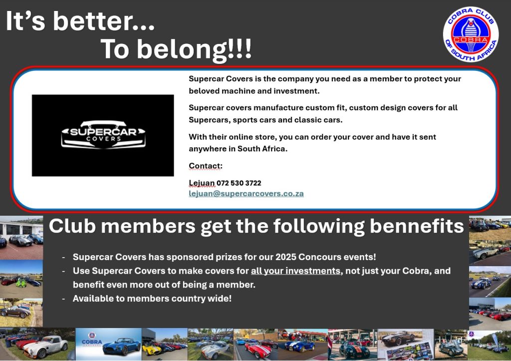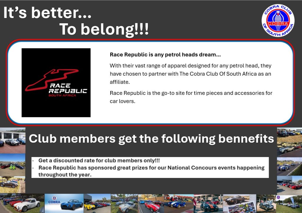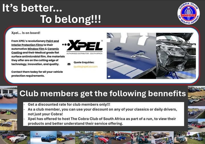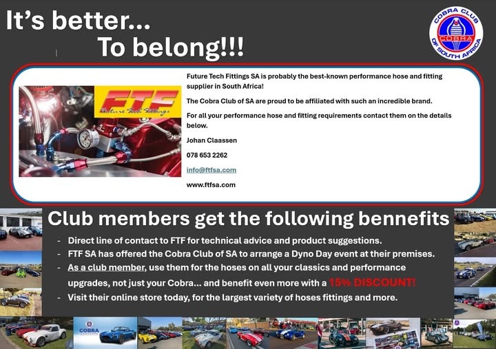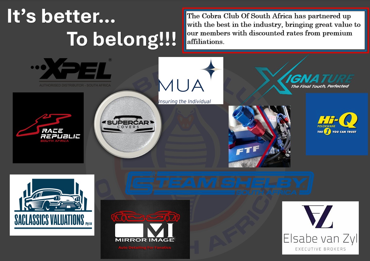 By joining you have access to great specials from companies that are in partnership with The Cobra Club Of South Africa