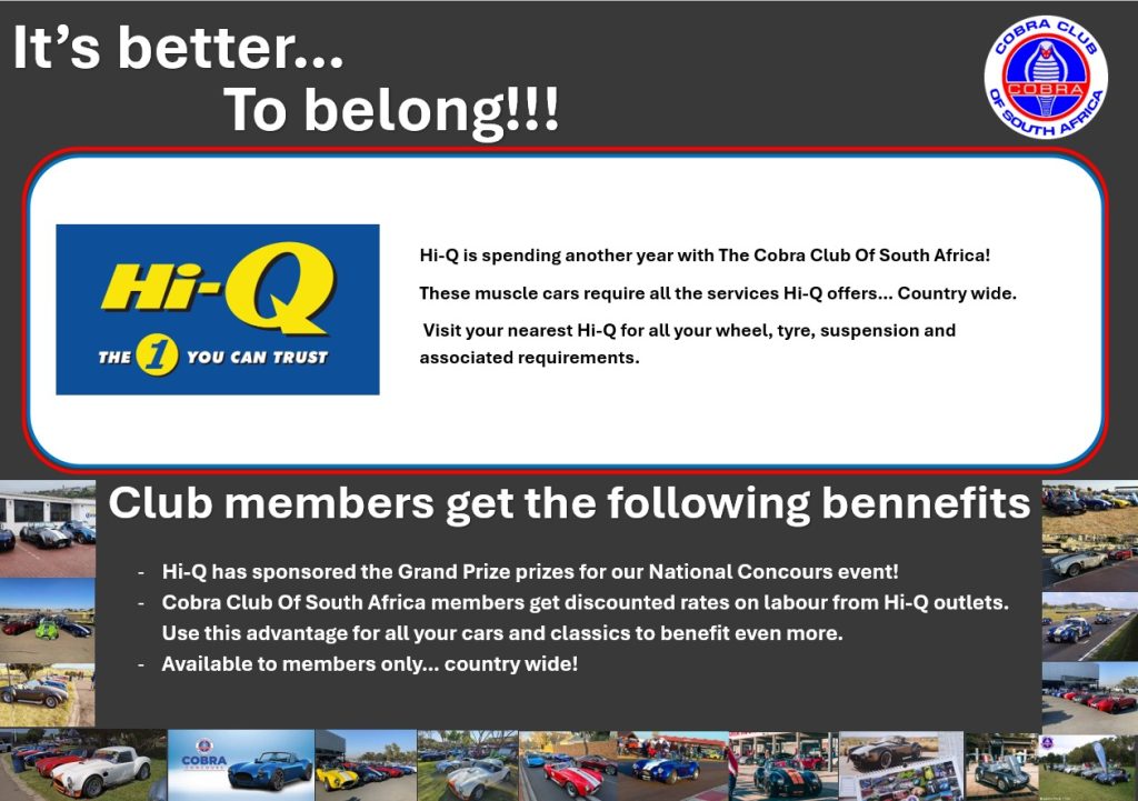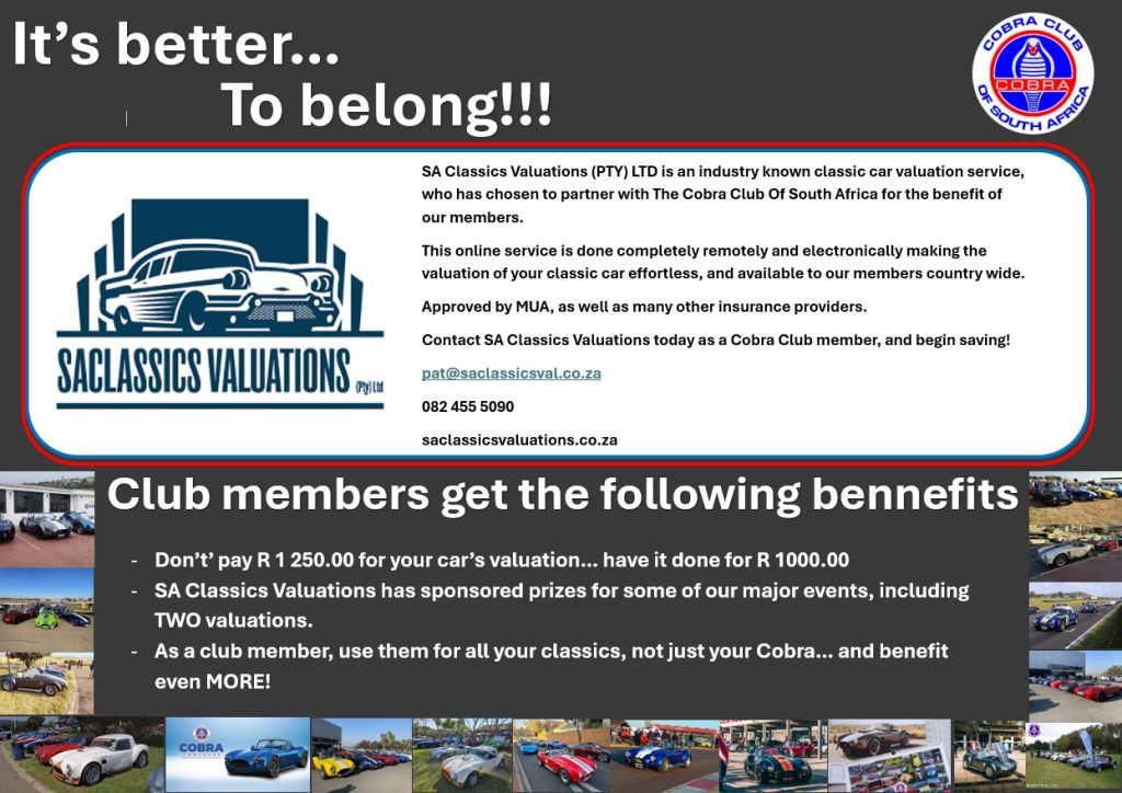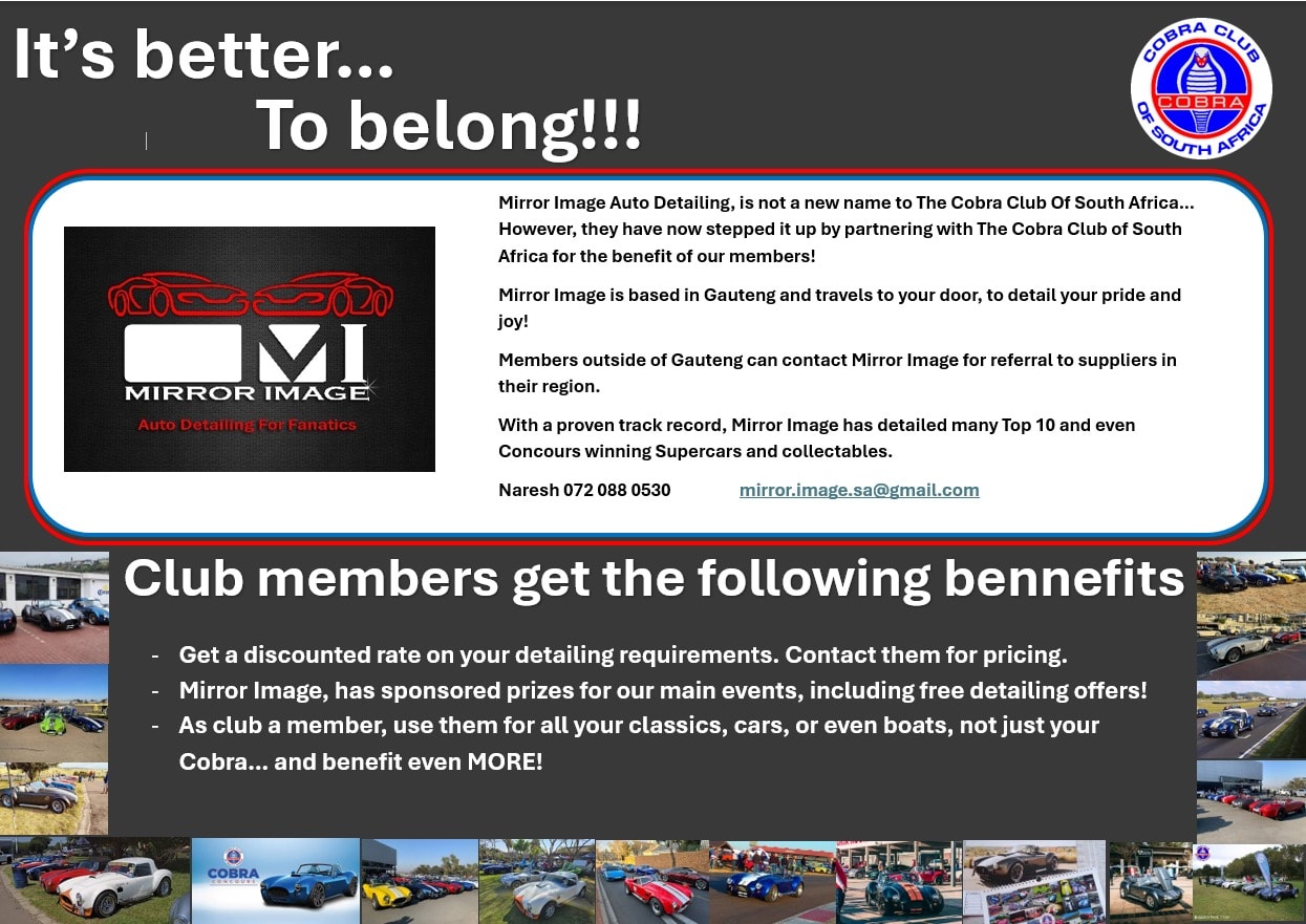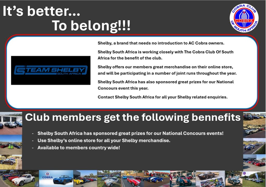 By joining you have access to great specials from companies that are in partnership with The Cobra Club Of South Africa
